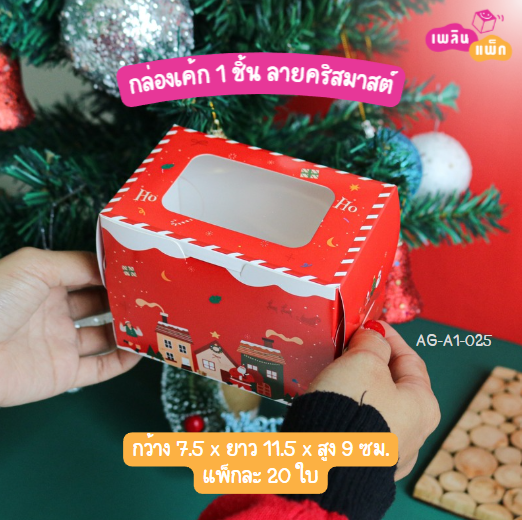 กล่องเค้ก 1 ชิ้น ลายคริสต์มาส