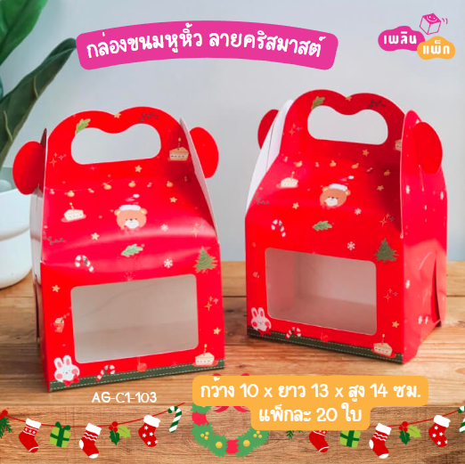 • กล่องขนมหูหิ้ว พิมพ์ลายคริสต์มาส