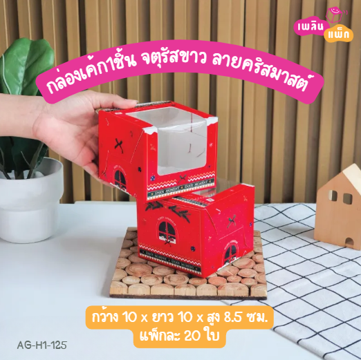 กล่องเค้ก1ชิ้น จตุรัสขาว ลายคริสต์มาส