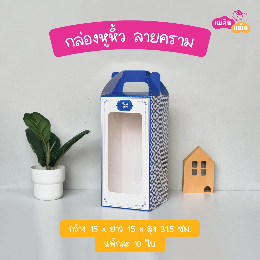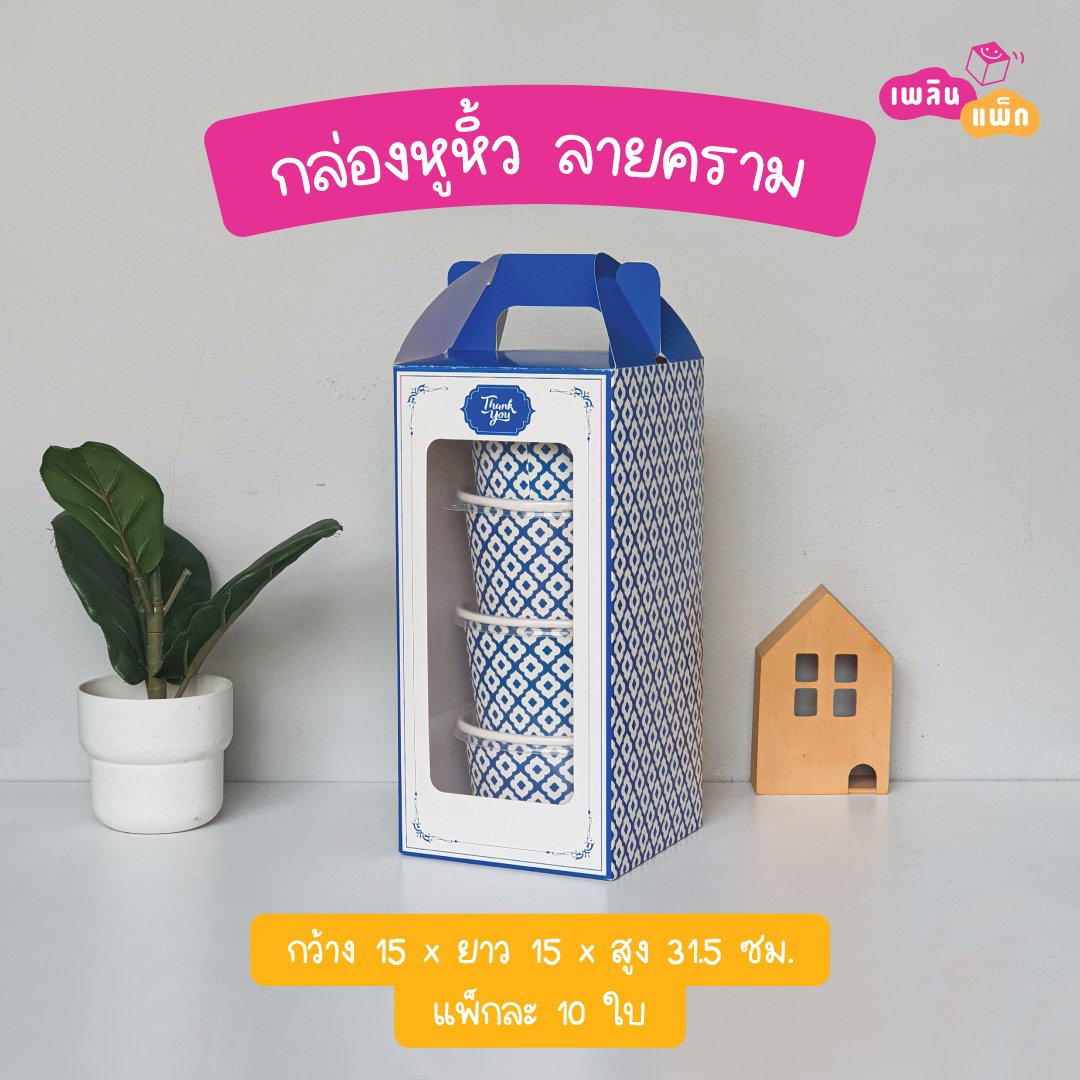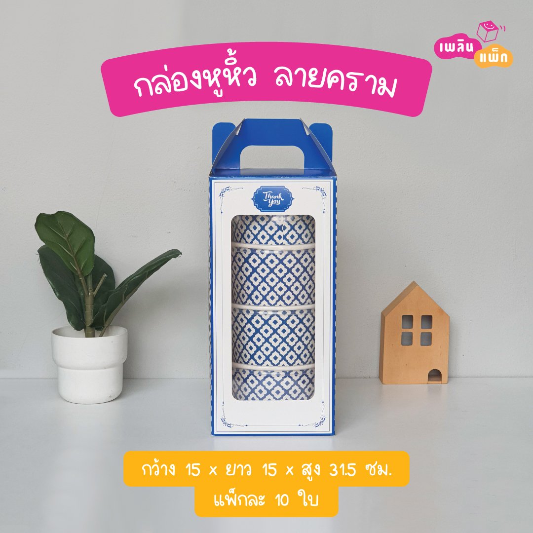 กล่องหูหิ้วขาว กระดาษการ์ดอาร์ต Food Grade พิมพ์ลายคราม