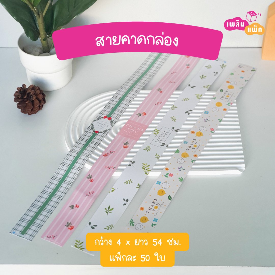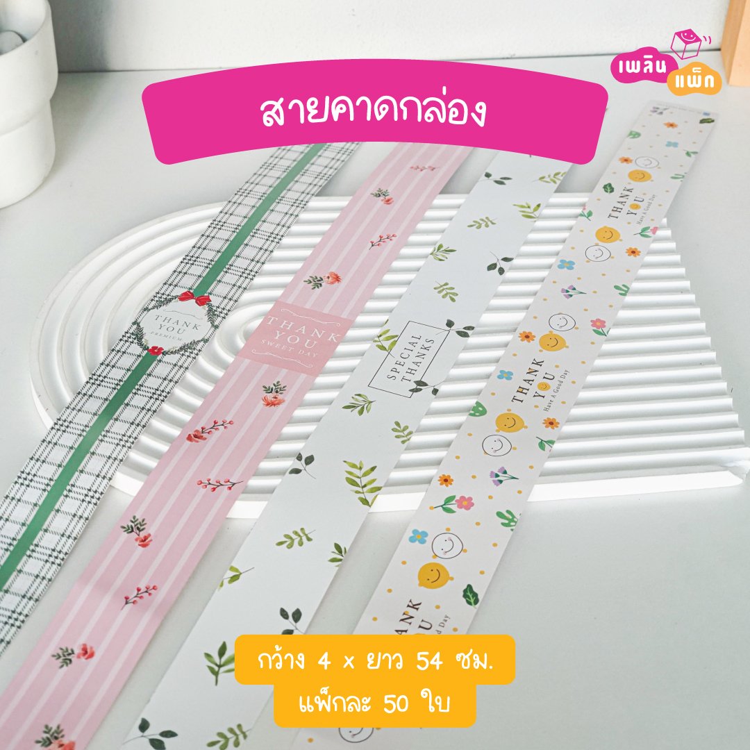 ขนาด: กว้าง 4 x ยาว 54 ซม. จำนวนต่อแพ็ก : 50 ใบ/แพ็ค สำหรับตกแต่ง คาดกล่องเบเกอรี่ กล่องของขวัญ กล่องอาหาร เพิ่มมูลค่าให้กับสินค้า